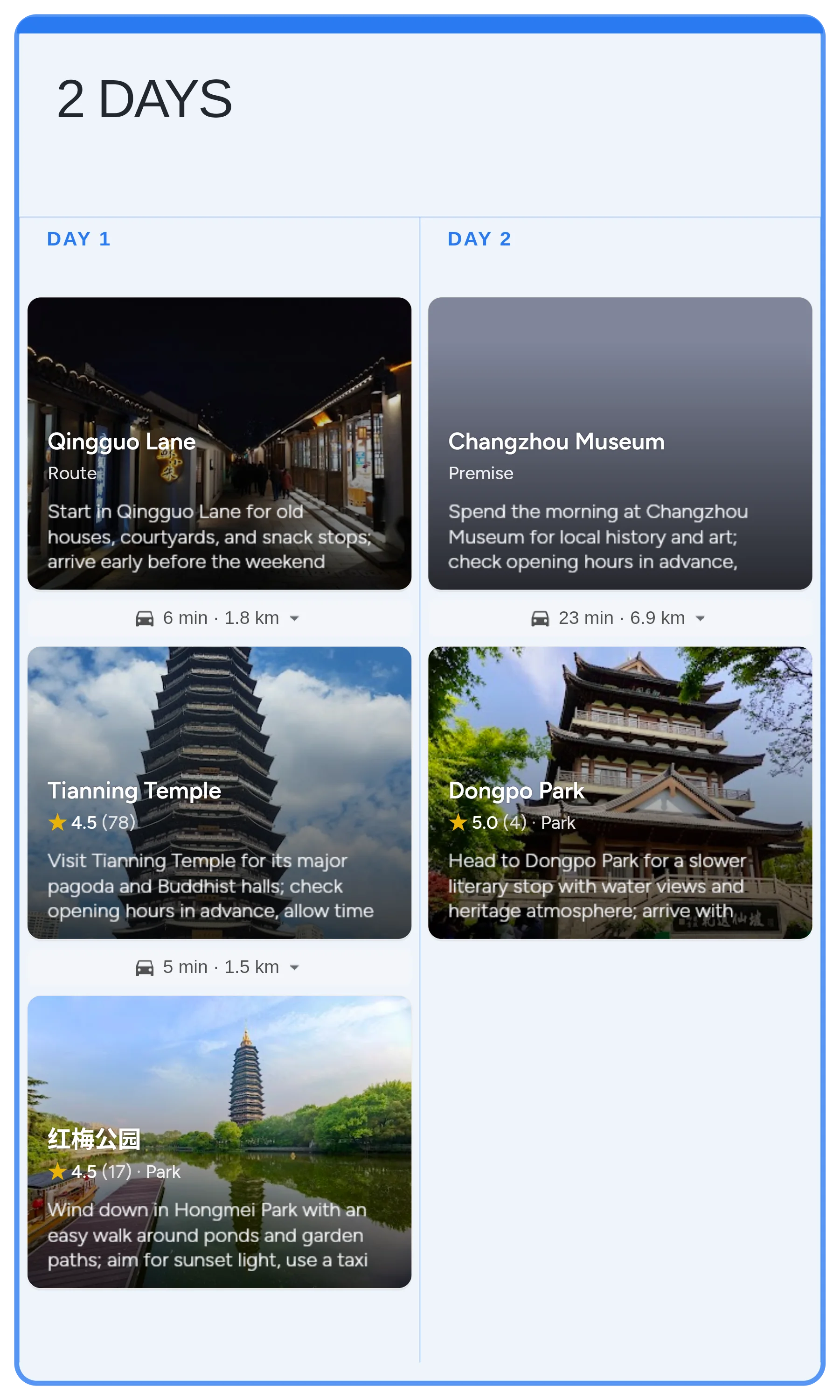 Build a compact 2-day Changzhou city break around heritage lanes, landmark temples, and easy park walks, with flexible add-ons for deeper history and modern city views. Best enjoyed in the comfortable April–October window for strolling and photos.