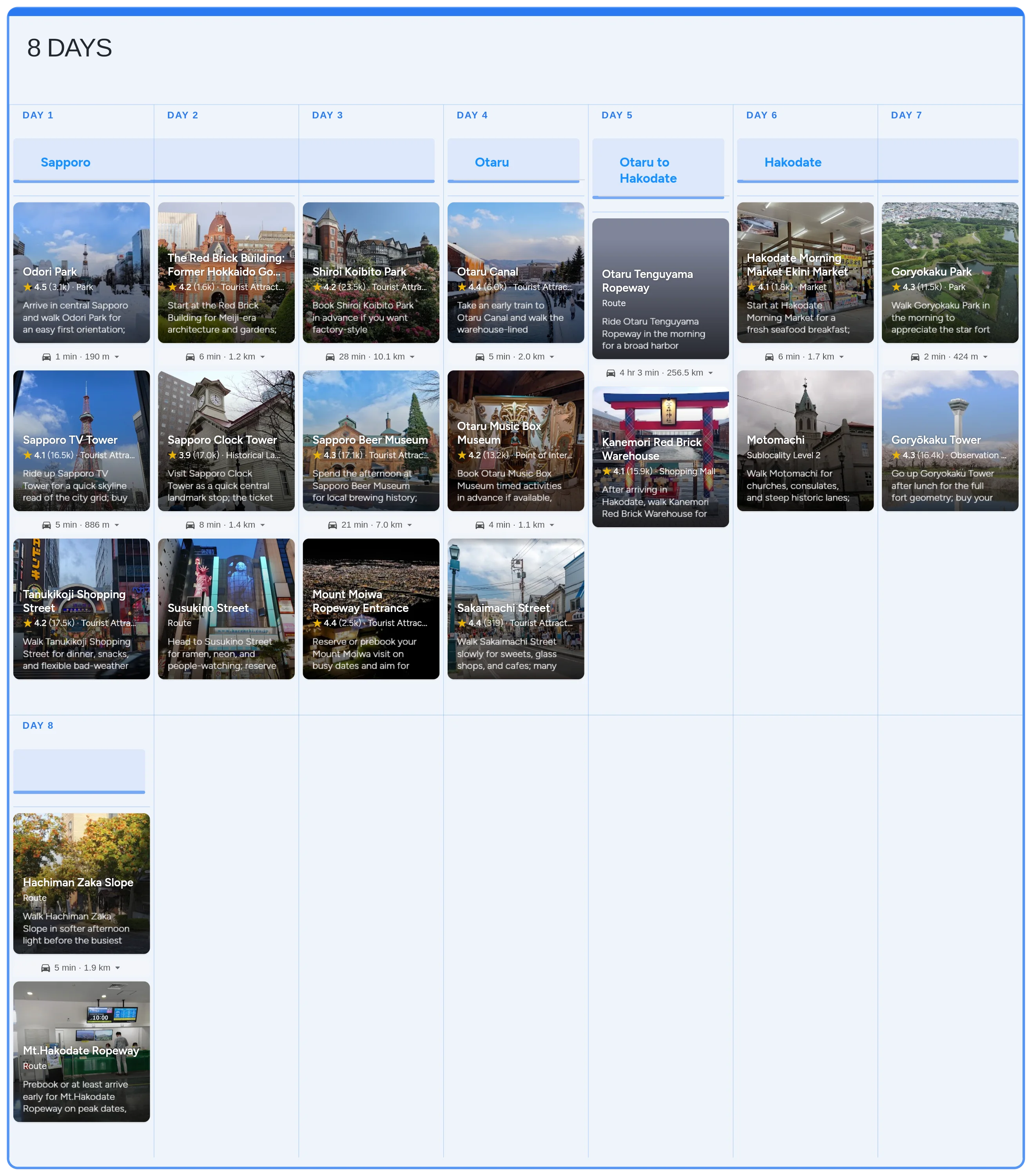 Start with the real Hokkaido board in Instaboard - mapped stops, day-by-day structure, and live sharing - then tailor the pacing, bookings, and notes to your trip.